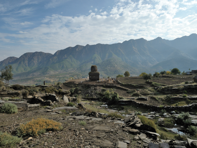 Sulla base dei dati del recente lavoro sul campo, la sequenza del sito è divisa in sei principali periodi strutturali (ad esclusione delle fasi protostoriche c. 1200-900 BCE) . La cronologia della Fase 1 è suggerita dalla datazione C14 dell'architrave in legno della finestra superiore del cleristorio S (Architrave 4 = 1840 +/-30 BP = 110 d.C.), e di una seconda fase di ricostruzione (compresa la costruzione della cupola superiore?) nella Fase 2 = Periodo V (?) come dedotto dalle datazioni al carbonio 14 1760/1790/1800 BP = metà del III secolo d.C. di tre assi di legno utilizzati come supporto sotto l'angolo SE della cupola interna (= Travi 1-3). Il Periodo III potrebbe corrispondere alla Macrofase 4a della sequenza di Barikot (cfr. sito 1).