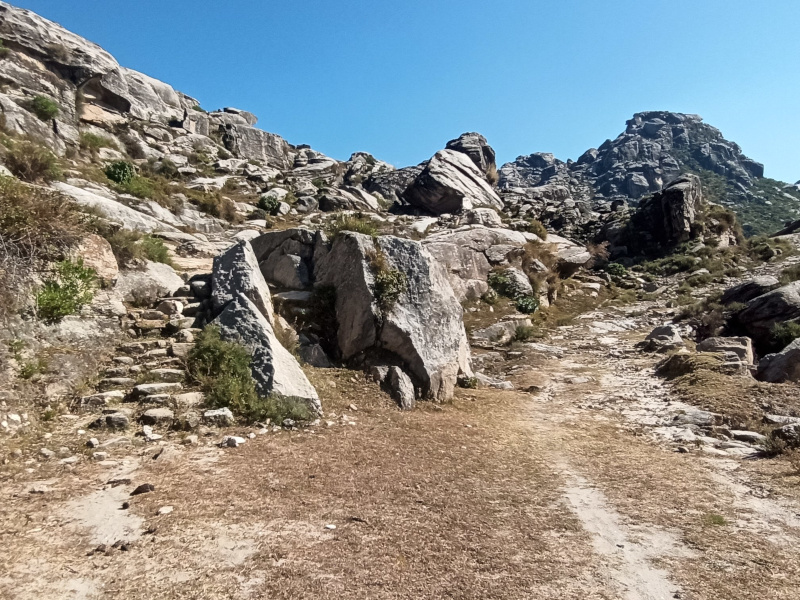 Il fondo del sentiero si presenta complessivamente compatto, con depositi detritici localizzati che non compromettono la percorribilità. I lavori recentemente effettuati hanno contribuito a regolarizzare il piano di calpestio, migliorando in modo significativo la continuità del percorso. Nei tratti più ripidi sono stati inoltre realizzati gradini e introdotti tornanti con l’obiettivo di ridurre la pendenza naturale e agevolare il transito dei visitatori. Anche nei punti in cui in precedenza erano presenti piccoli muretti da scavalcare, sono stati creati appositi passaggi che permettono un attraversamento agevole e sicuro. Per quanto riguarda le fonti d’acqua presenti lungo il percorso, queste sono state oggetto di interventi mirati di pulizia e sistemazione. L’accesso è stato reso più agevole mediante la rimozione della vegetazione invasiva e la regolarizzazione del terreno circostante. Anche i punti destinati all’approvvigionamento e l'abbeveraggio sono stati migliorati, garantendo una fruizione più sicura e ordinata da parte dei visitatori.