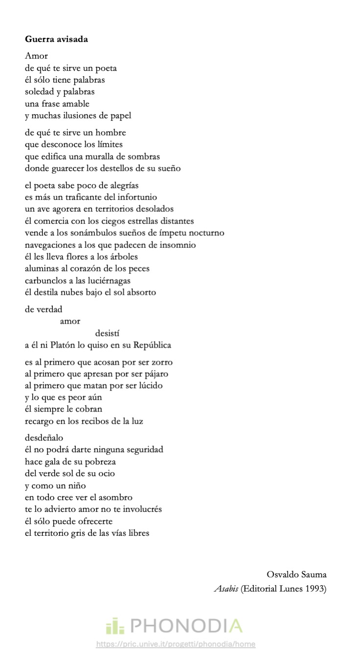 Registrazione audio realizzata all’Università di Bologna, Italia, il 6/12/2014 da Alessandro Mistrorigo. Grazie al Centro di Poesia Contemporanea.